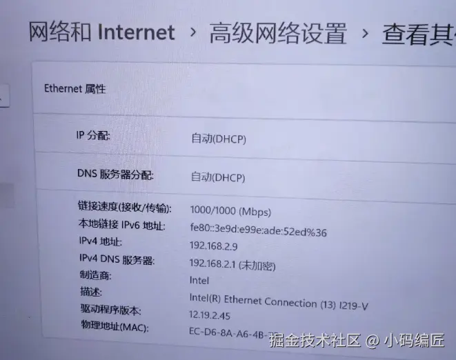 拿到目标设备的IP以及有线Mac地址(可以在设备连接网络的属性里查看):