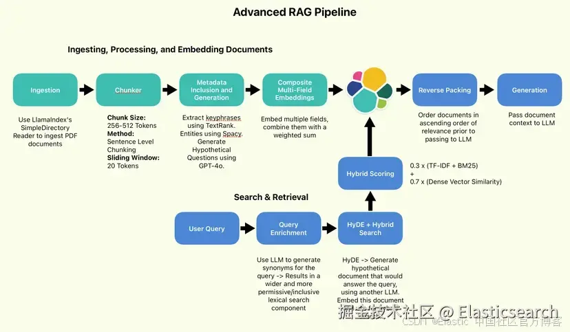我们将实施其中一些建议的最佳实践,即旨在提高搜索质量的实践(句子分块/sentence chunking、HyDE、反向打包/reverse packing)。
