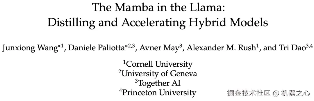最近,一篇题为《The Mamba in the Llama: Distilling and Accelerating Hybrid Models》的论文证明:通过重用注意力层的权重,大型 transformer 可以被蒸馏成大型混合线性 RNN,只需最少的额外计算,同时可保留其大部分生成质量。