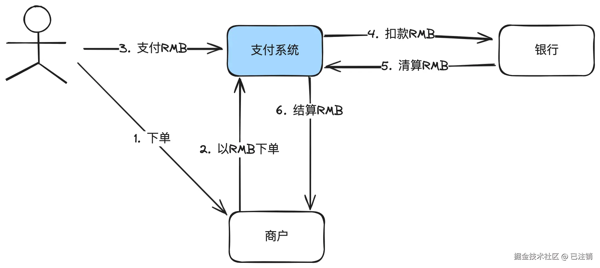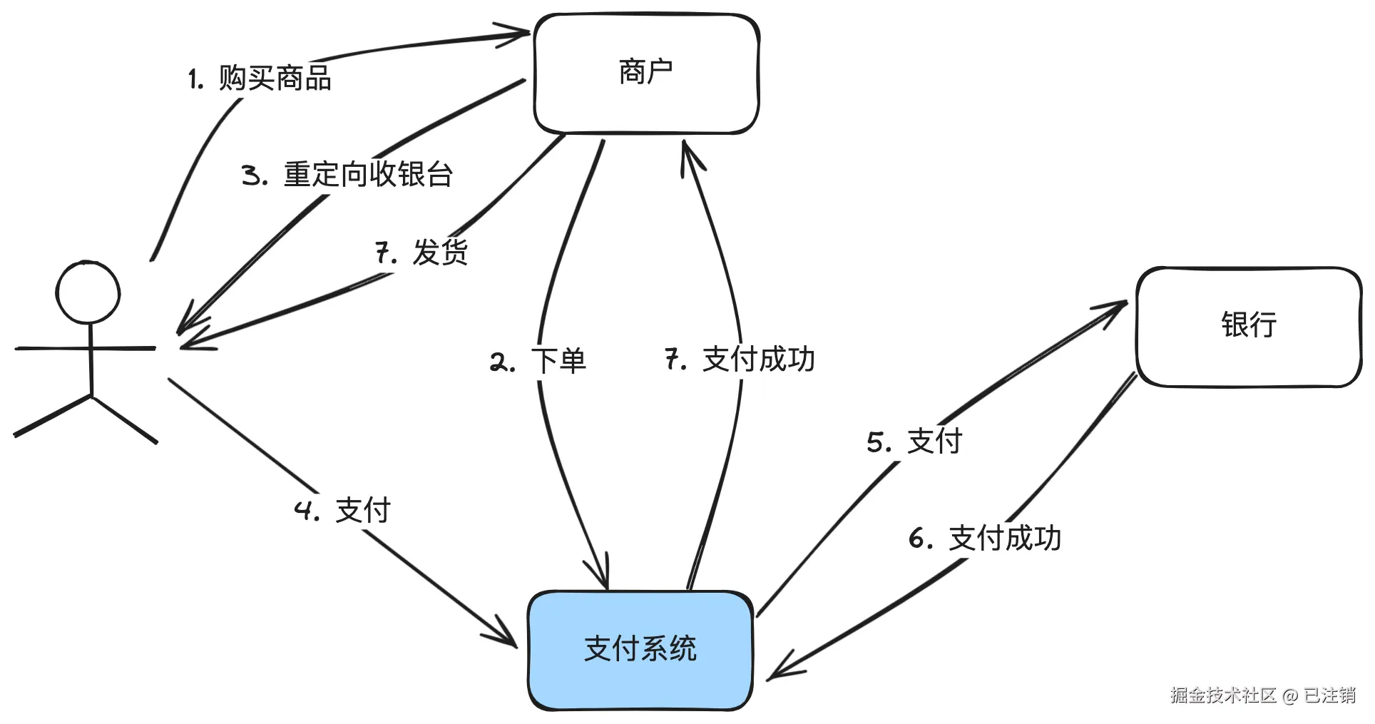 - 这是一个最简化的支付流程。真实的交互比这个复杂得多,单收银台渲染就可以写一整篇文章。但对于讲清楚支付系统的作用,已经足够。