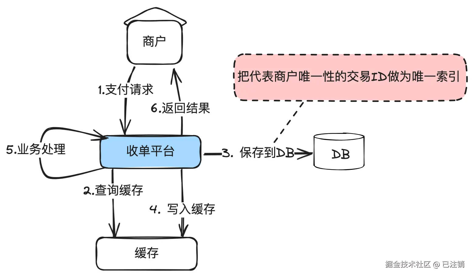 在数据库前面可以加一层缓存来提高性能,但是缓存只用于查询,查到数据认为就返回幂等成功,但是但不到,需要尝试插入数据库,插入成功后再刷新数据到缓存。
