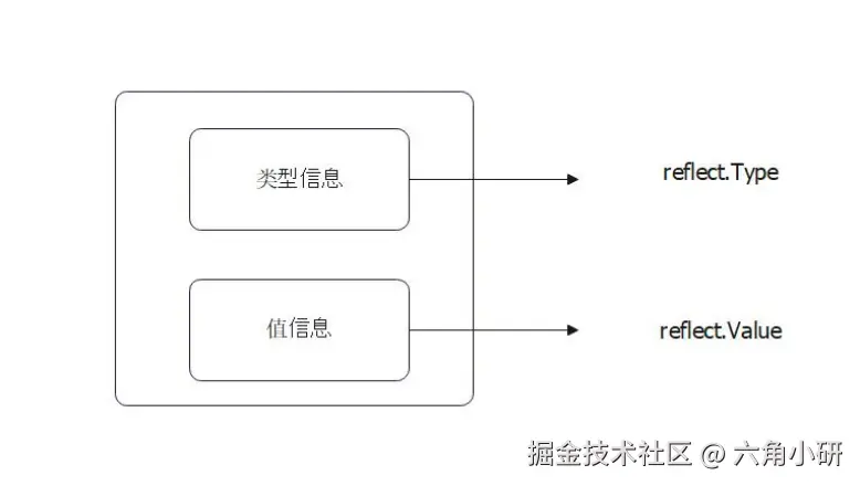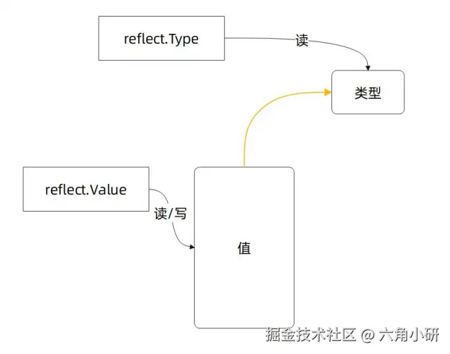 其中,reflect.Value用于操作值,部分值是可以被反射修改的。reflect.Type用于操作类型信息。类型信息是只能读取的。