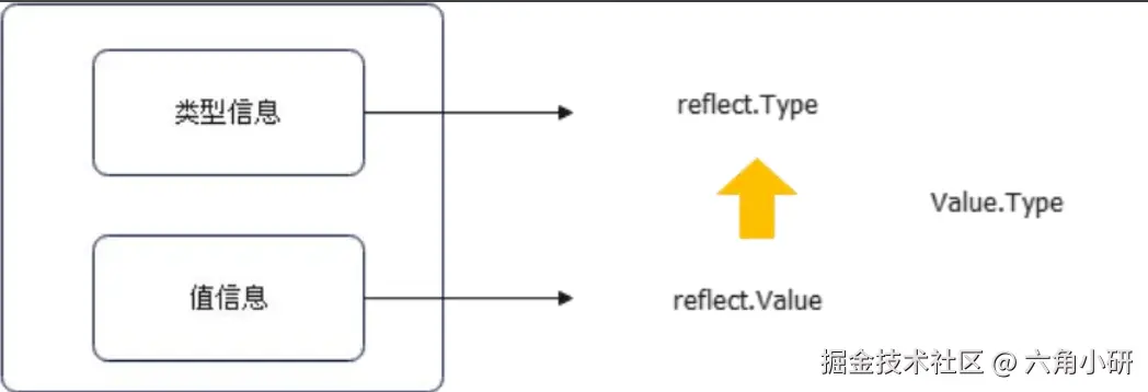 Value到Type。直接可以调用Value结构体上绑定的func (v Value) Type() Type {}方法。 -
