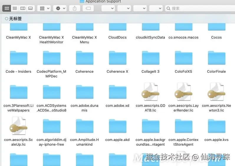 在这几个文件夹下,通常会再以各个 App 的”名字“或者 "App Bundle identifier"(MacOS中APP唯一识别的ID,命名规则通常为 「com.公司名.App名」)命名子文件夹。