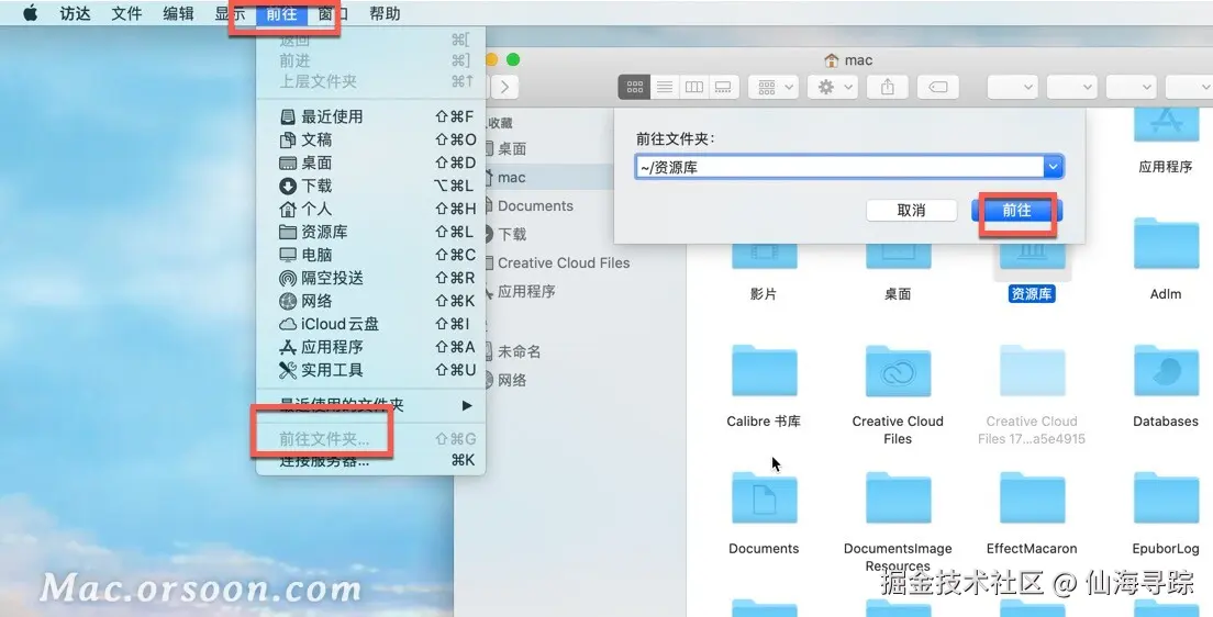 然后在「访达」中用户文件夹下多了一个 “Library“ (资源库)文件夹。这个文件夹下存放的就是我们的目标「用户App运行所需文件和数据」。
