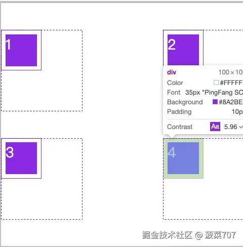 下面创建了 2X2 栅格,我们将第 2 个 DIV 设置的格栅已经超过了2行2列,所以系统会自动创建栅格。