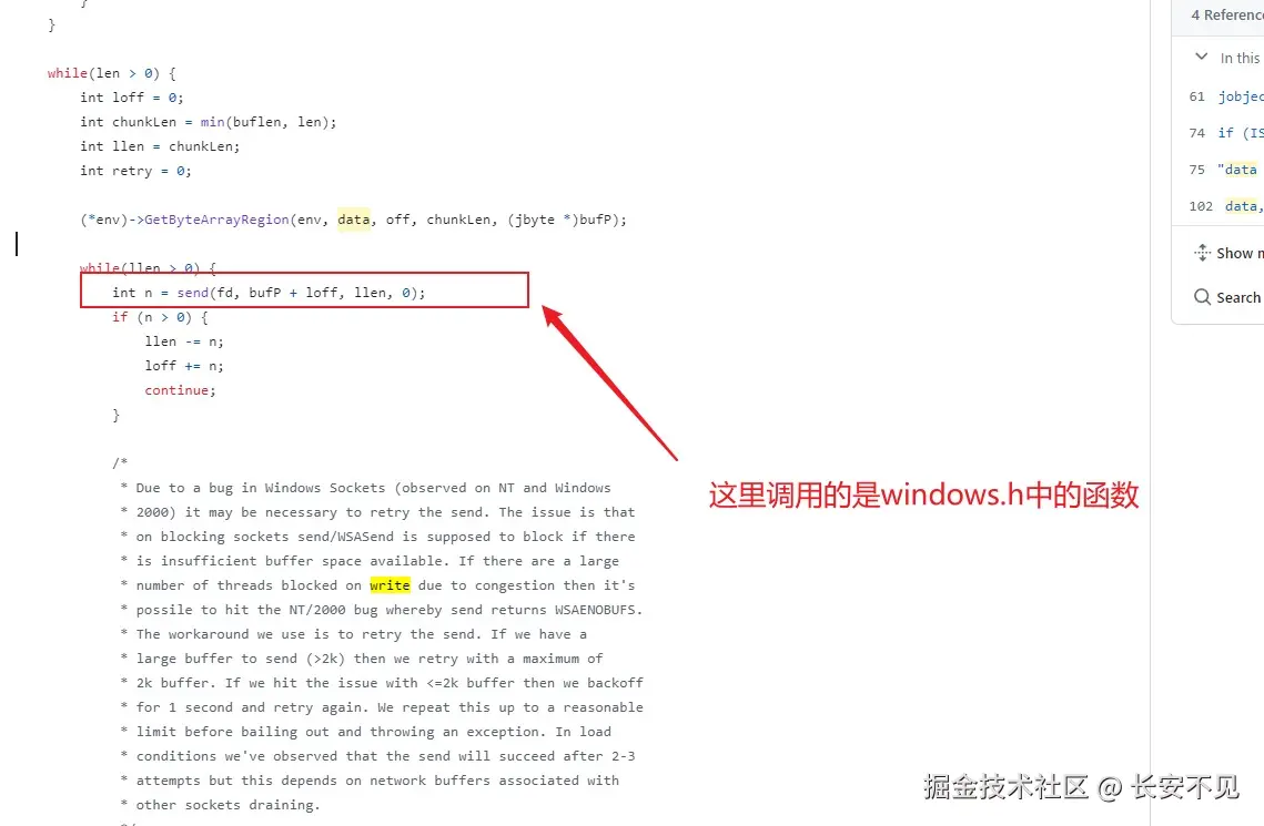 这里思考写,为什么不能控制超时呢,这代表写出去了一定能收到? 如果你熟悉网络编程,java.net.SocketException: Broken pipe 这个错一定不会陌生,这个错一般对应在另一端关闭连接的时候,还在写入数据。 我们一下socketWrite0在JDK 8的native实现,在windows下面的实现如下: