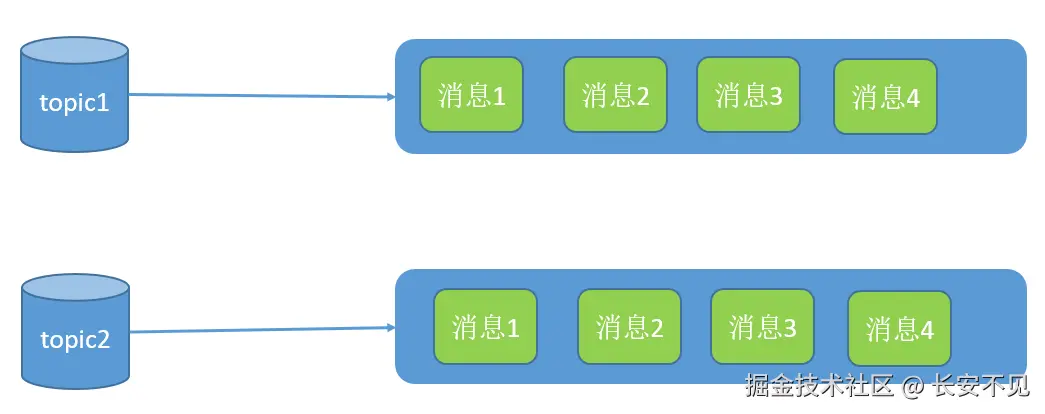不同的垃圾桶放不同类型的垃圾,不同的主题放不同类型的消息: