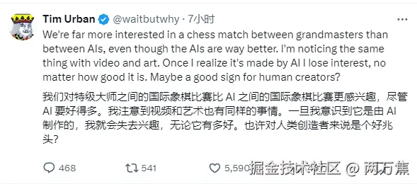- 对于 AI 内容的思考:现在看到 AI 生成的内容感觉就是一眼惊艳,但看多了就感觉索然无味了