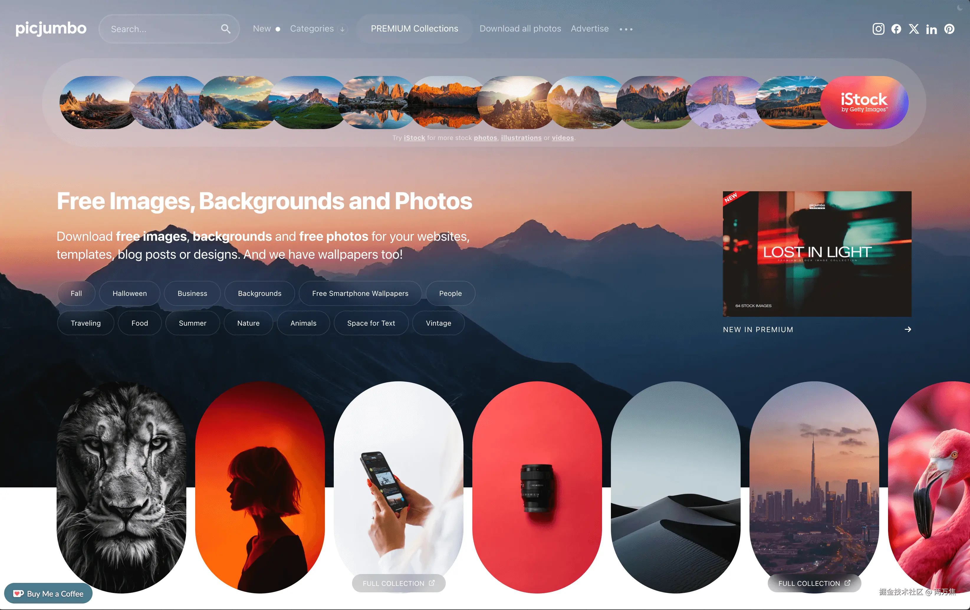 picjumbo:免费图像、背景和照片下载网站,图片质量很高,很有设计感