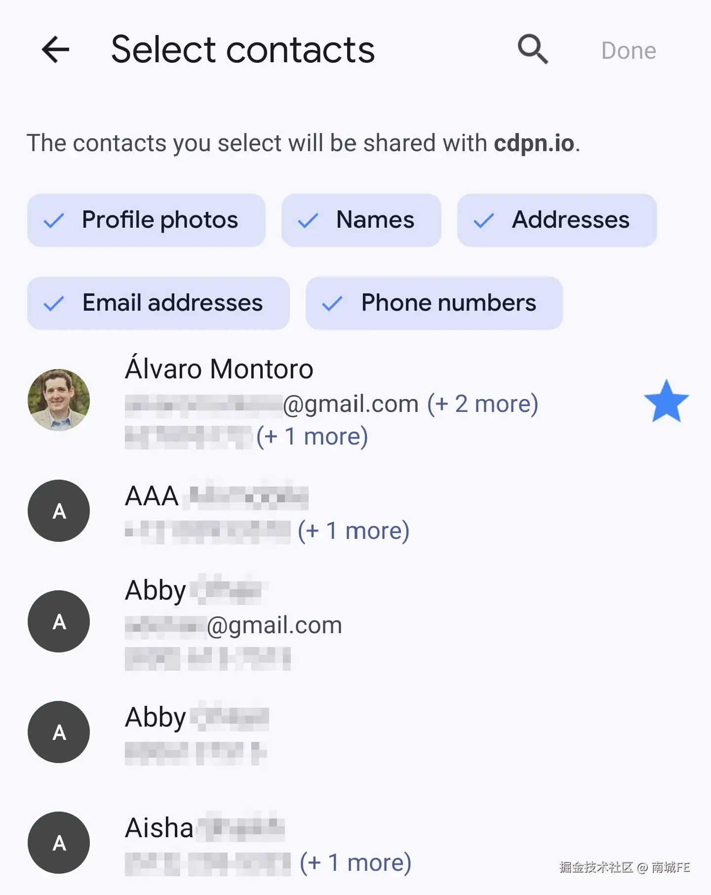 作者注:本文中描述的技术和流程是实验性的,只能在少数浏览器中工作。在撰写本文时,联系人选择器API仅支持 Android Chrome(从版本80开始)和iOS Safari(从版本14.5开始)。如果要检查是否可使用这个功能,可以访问这个演示网站