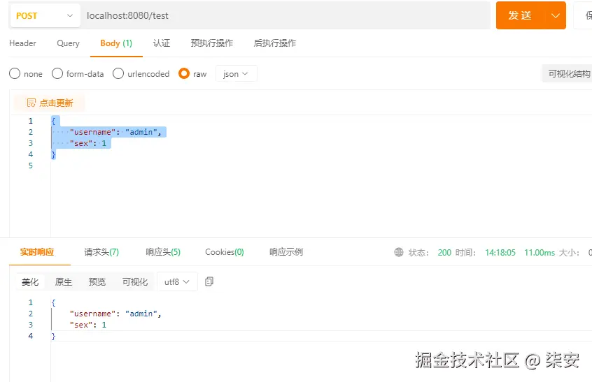 启动项目后,使用 Apipost 调用接口。