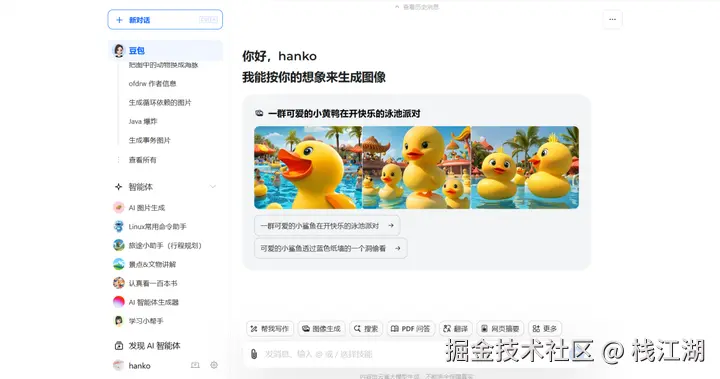 在字节大量存量用户的背景下,字节推出的AI产品豆包,因此也是近水楼台先得月有大量抖音用户在使用,它支持免费的文字聊天和绘画功能。