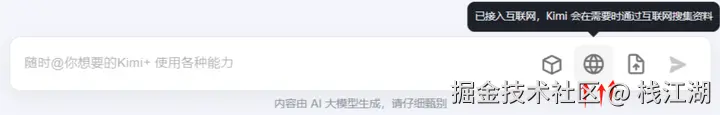 使用时会发布这有个互联网的图标,初次使用的要注意一下如果你输入的内容包含网址的话,这个互联网标记就会变为关闭状态"上传文件或网址后,已自动关闭联网模式"