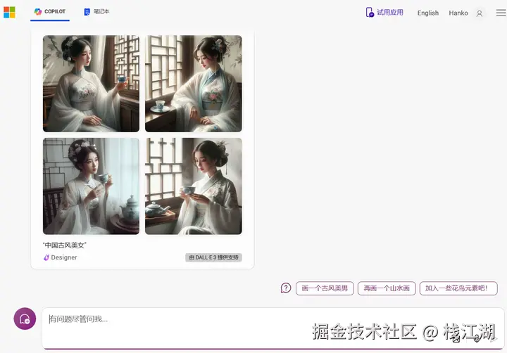 new Bing绘画能力也是非常强大的,目前市面上比较强大的几个绘画模型Midjourney、DALL-E及Stable Diffusion。new Bing接入的就是DALL·E3。