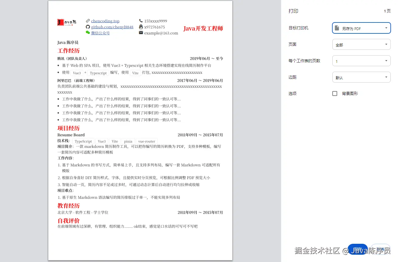 codecv 是一款非常优秀的简历生成工具,只要掌握了 Markdown 的语法,就能快速生成一份优美的简历,省去了排版的烦恼~