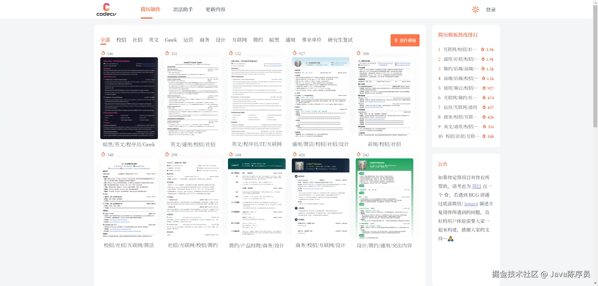 codecv —— 一款制作简历的工具,帮助你以 Markdown 的简洁语法快速编写生成专业的简历,并支持转为 PDF 保存,还提供了海量模板。