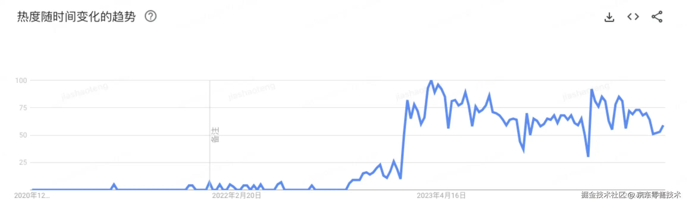 ChatGPT 的发布,给 AI 行业带来重大变革,发布之后搜索热度持续上升。
