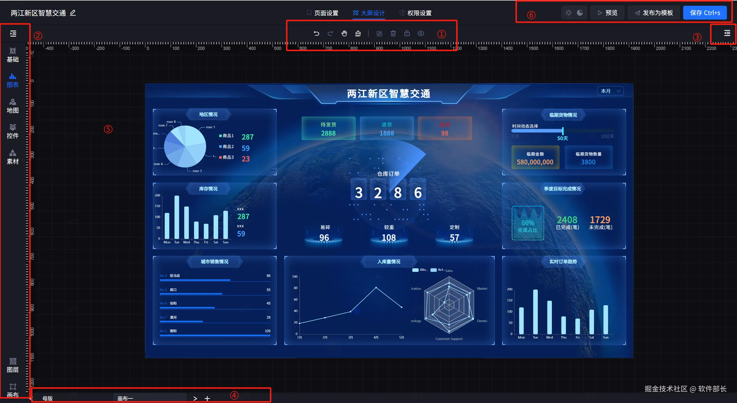 交互式设计,用户可以通过简单的拖拽和配置,快速搭建出符合自己需求的数据大屏。