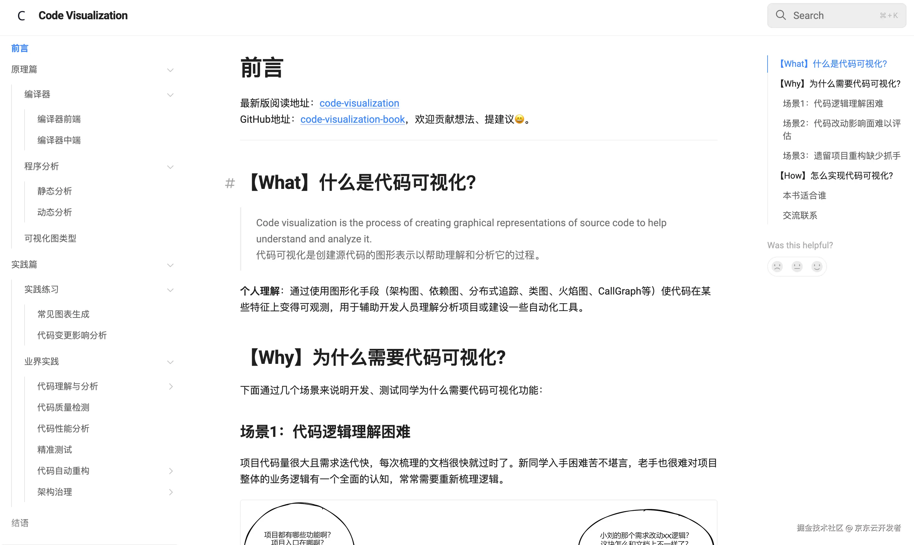 我也在用实际的行动验证,24年初立了个Flag🚩:写一本关于“代码可视化”的GitBook,目前《Code Visualization》在持续施工中,希望有生之年能写完吧😁,感兴趣的朋友可以先睹为快,提提建议。