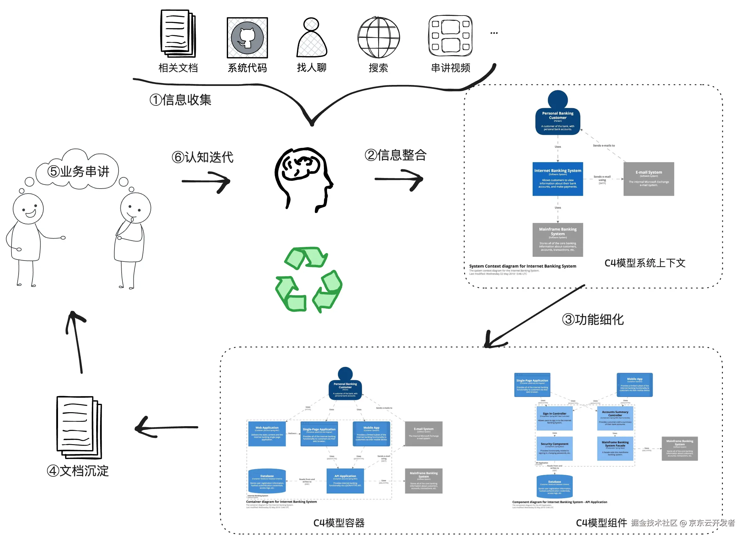 ④ 文档沉淀:将理解的内容整理成文档,从背景、名词、现状、未来发展等方面进行叙述,串联业务和系统整个生命周期;