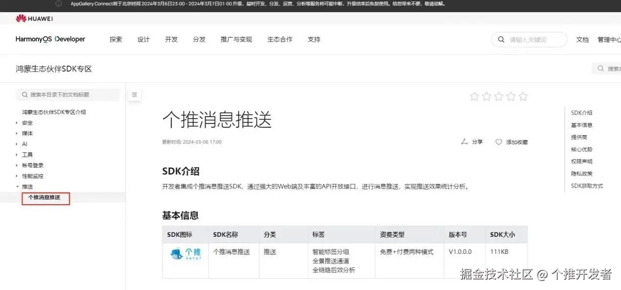▲个推消息推送SDK已上架华为鸿蒙生态市场