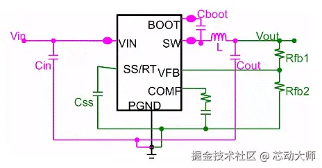 大电流地:L,Cin,Cout,Cboot连接到大电流地的网络;