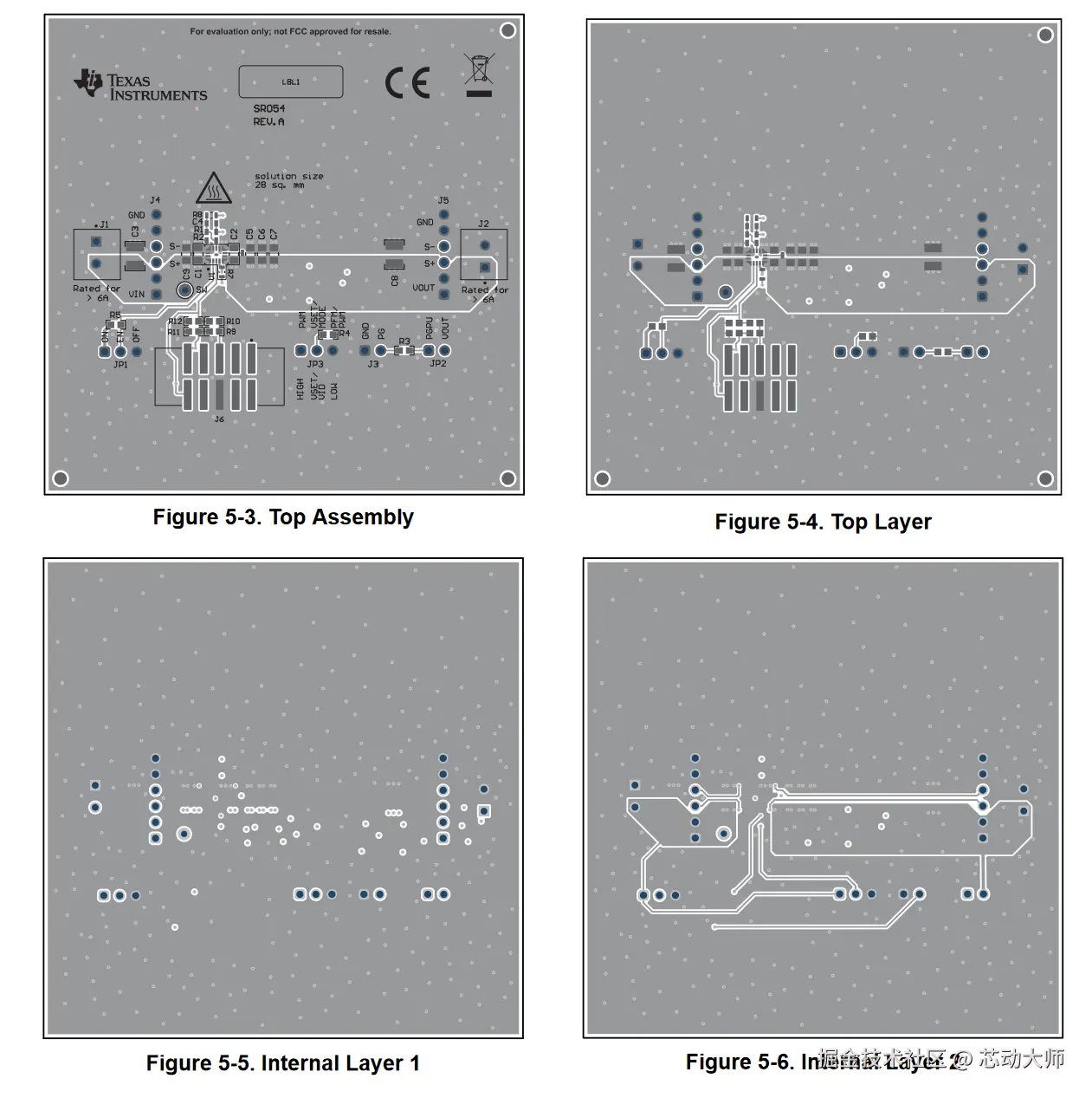 下图是TI的一个开发板的layout,红色为上管开时的电流路径,蓝色为下管开时的电流路径;如下的layout有如下比较好的优点: