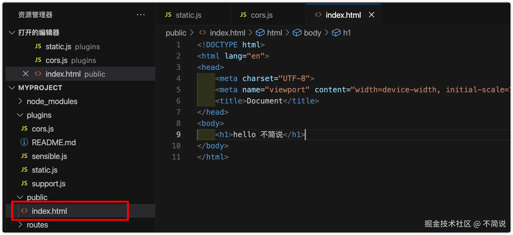 在public文件夹下新增一个index.html文件