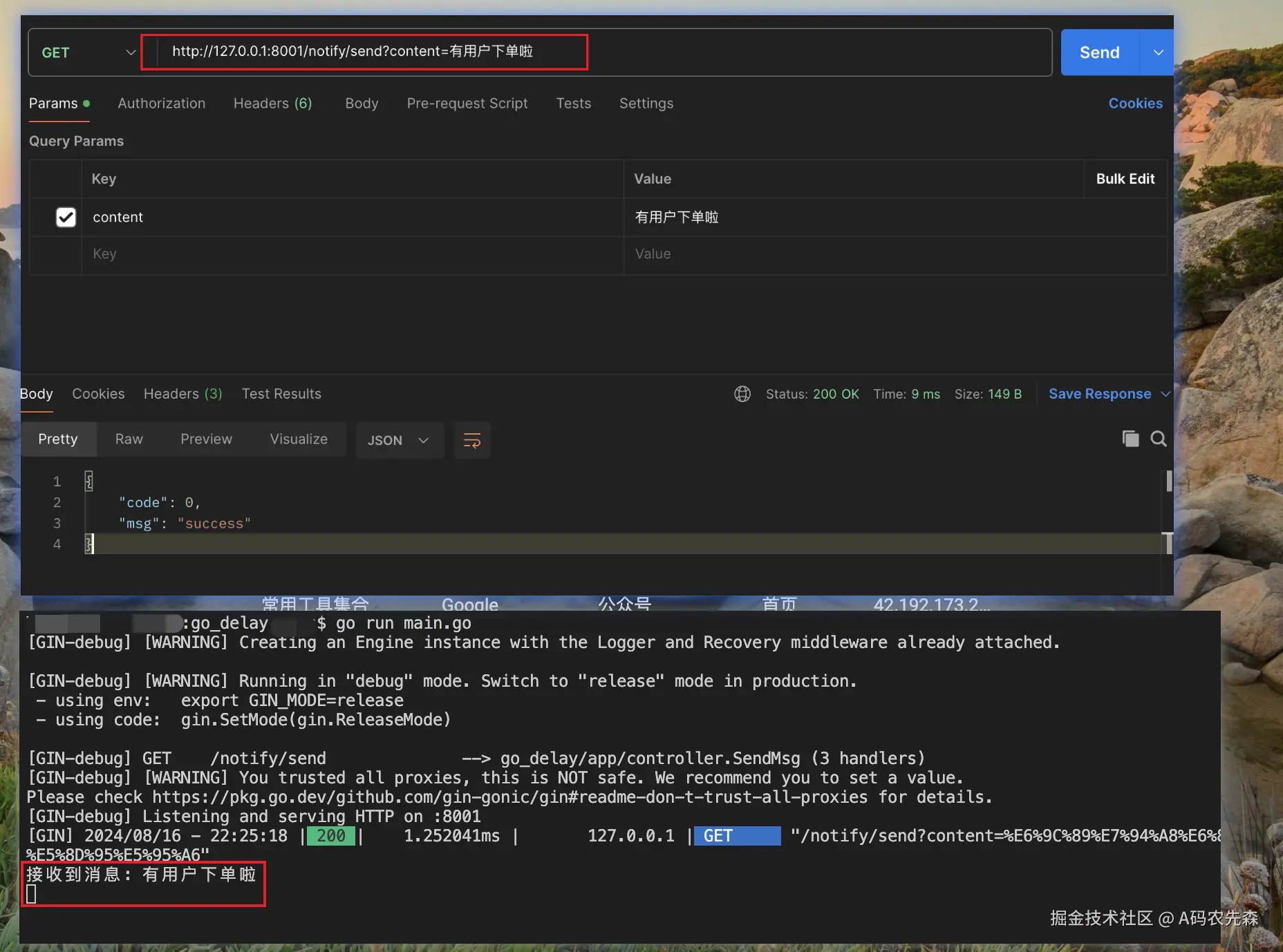 我们直接执行 go run main.go 启动服务,然后使用 Postman 工具进行调用。