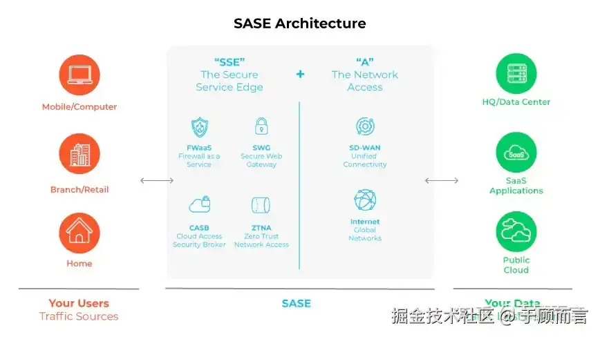 用户的办公场景,移动办公,用户随时随地用各种终端和网络,这些场景安全如何防护,sase提到的就是零信任ztna