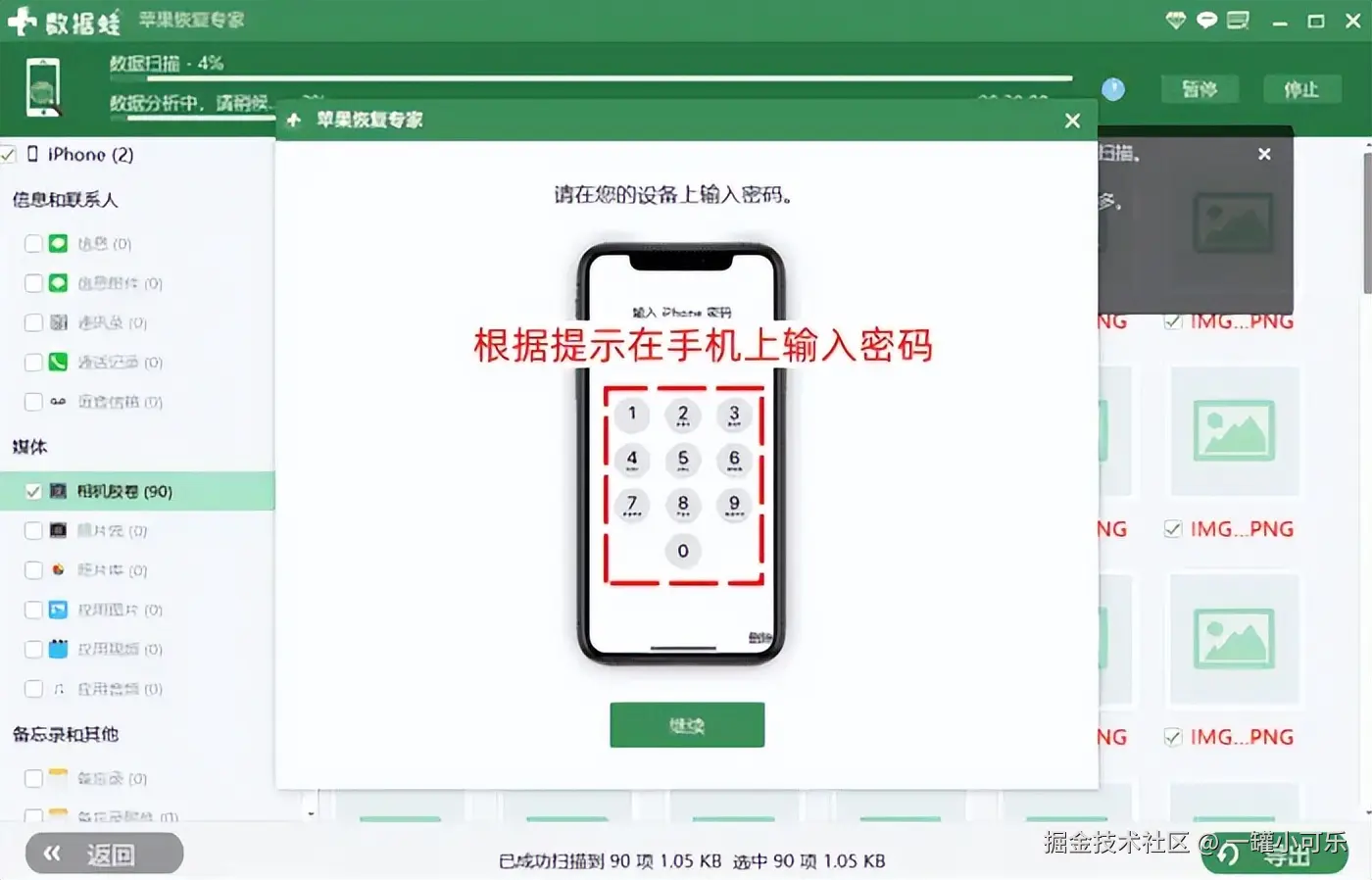 步骤2:在数据扫描的过程中,这个工具会提示你在iPhone上输入相关的信任密码,你只需根据提示进行操作即可。