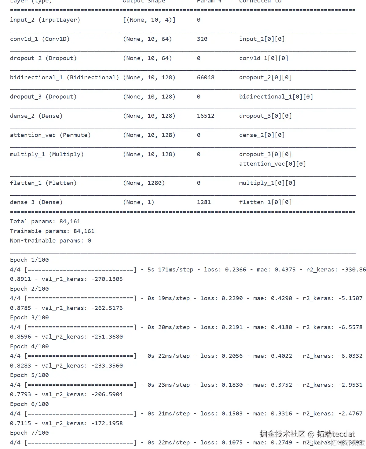 定义模型参数:INPUT_DIMS = 4,TIME_STEPS = 10,lstm_units = 64。对数据进行归一化处理