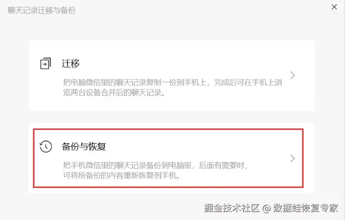适用场景: 您之前已使用微信电脑版并开启了聊天记录备份功能时。