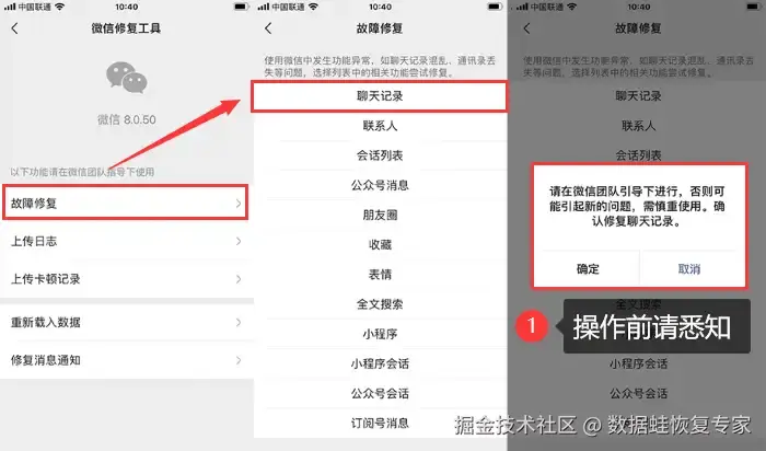 适用场景: 当微信软件出现故障导致聊天记录异常丢失时。
