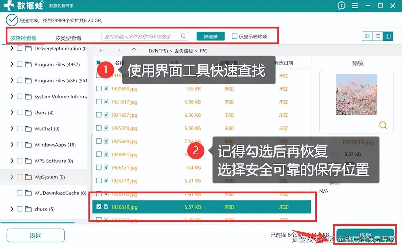 如果云端没有备份,或者备份不完整,建议你先尝试一些电脑文件恢复工具。以【数据 蛙恢复专家】为例,它支持多种存储设备和文件系统,能够在一定程度上恢复因误删除、格式化、病毒攻击等原因导致的数据丢失问题。此外,它在找回丢失文件的过程中不会对原有数据进行任何操作,确保数据的安全性。你可以这样使用: