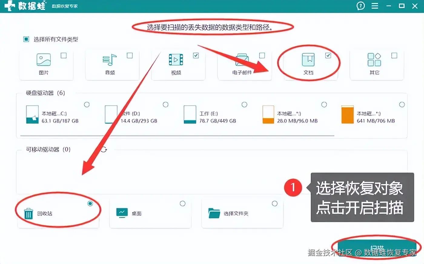 数据 蛙恢复专家是一款简单易用的工具,特别适合个人用户使用。它支持从各种硬盘、U盘、SD卡等存储设备中恢复文件,包括电脑回收站。与其他回收站恢复软件相较,它的恢复速度较快,且对于各类文件类型恢复效果较好。你可以按照下面的步骤尝试操作: