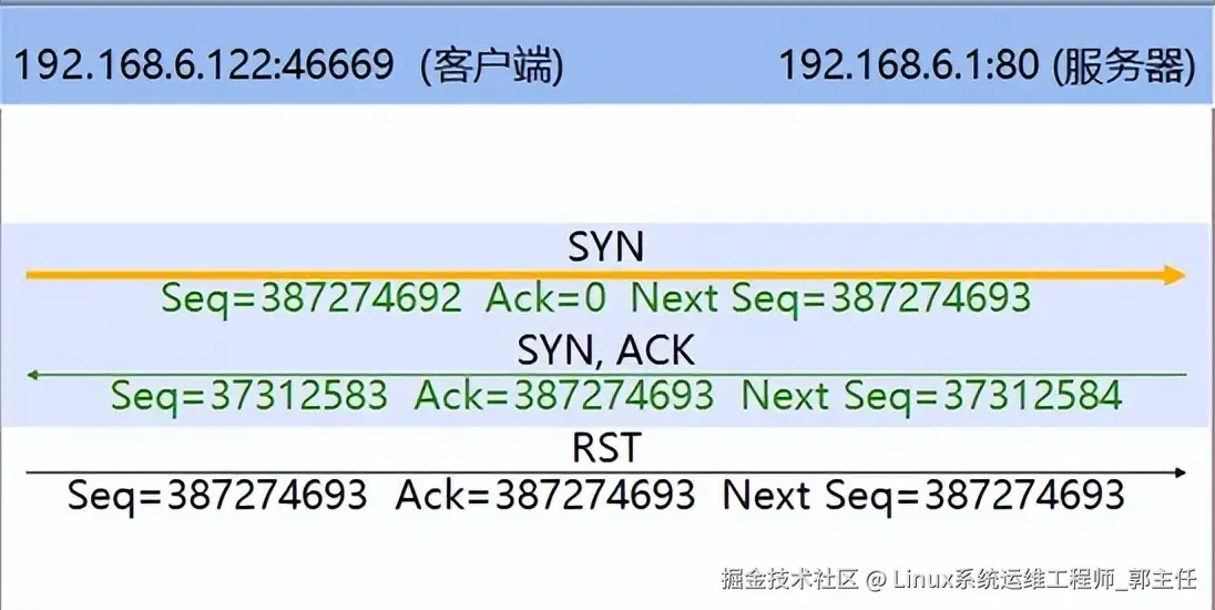 - 服务器端口未开放:服务器在该端口未运行网络服务,或服务器上客户所请求的服务失效,则服务器会通过RST拒绝新连接。