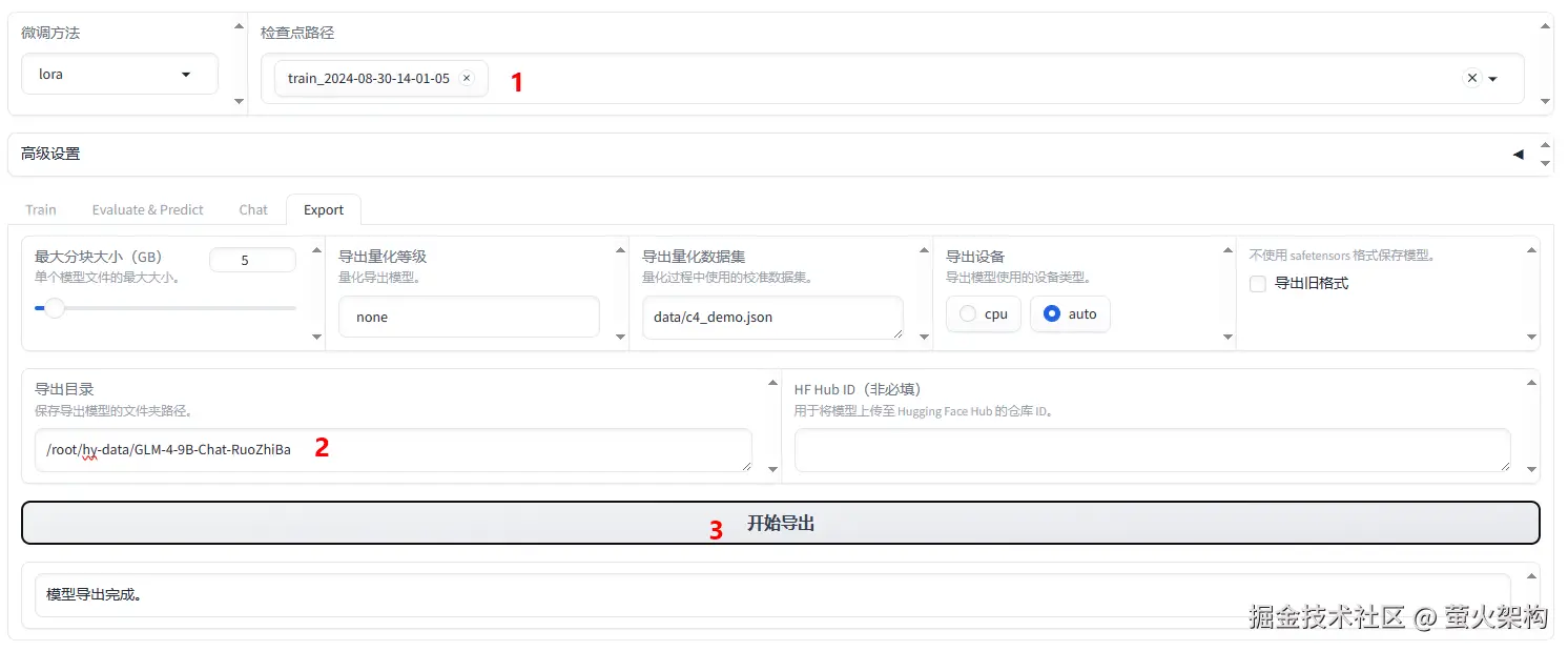 导出目录:设置一个服务器上的路径,新的模型会存放到这里。