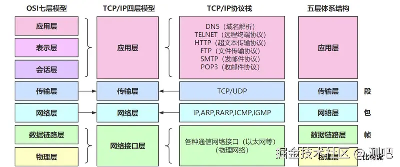 - 五层协议是OSI和TCP/IP的综合,实际应用还是TCP/IP的四层架构。