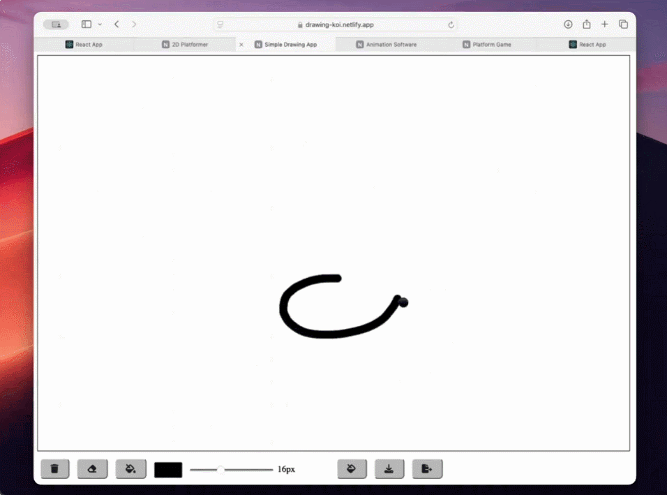 除了游戏,这位 8 岁小孩还制作了一个绘图应用,界面设置的非常简洁明了,点击相应的按钮,可以勾勒出不同的图形: