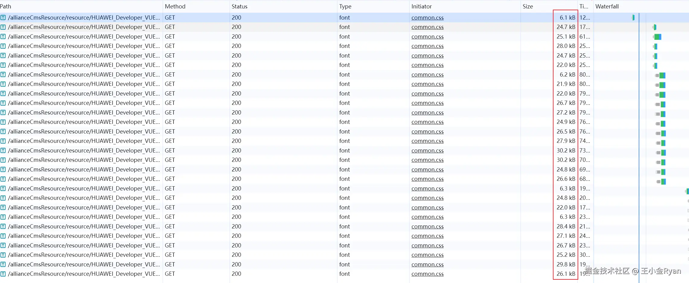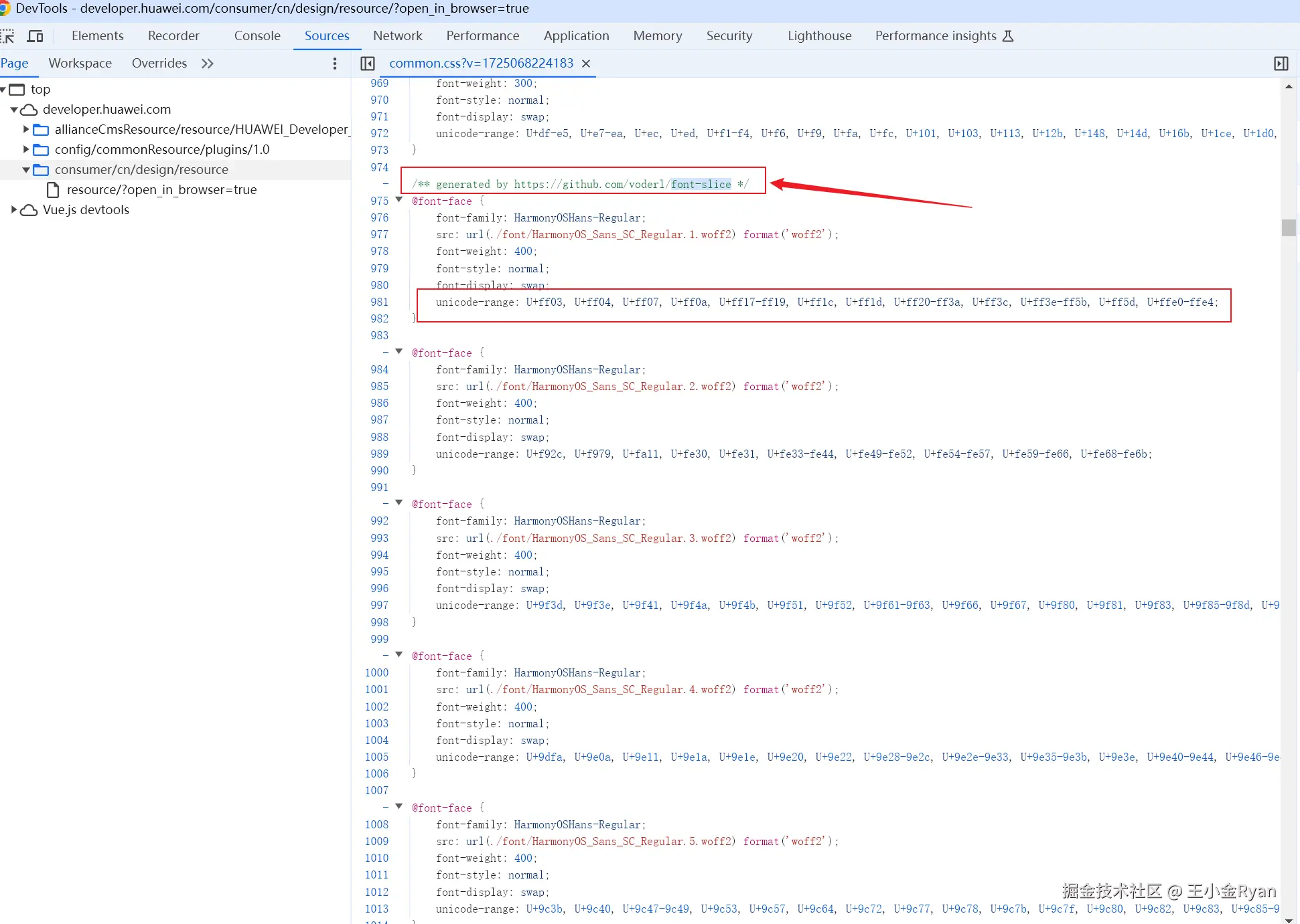 上面两种方式,对于我来说都不太理想,于是只能继续寻找方案。很好奇,鸿蒙的官网也是用的鸿蒙的字体,那它是怎么兼顾性能的呢?