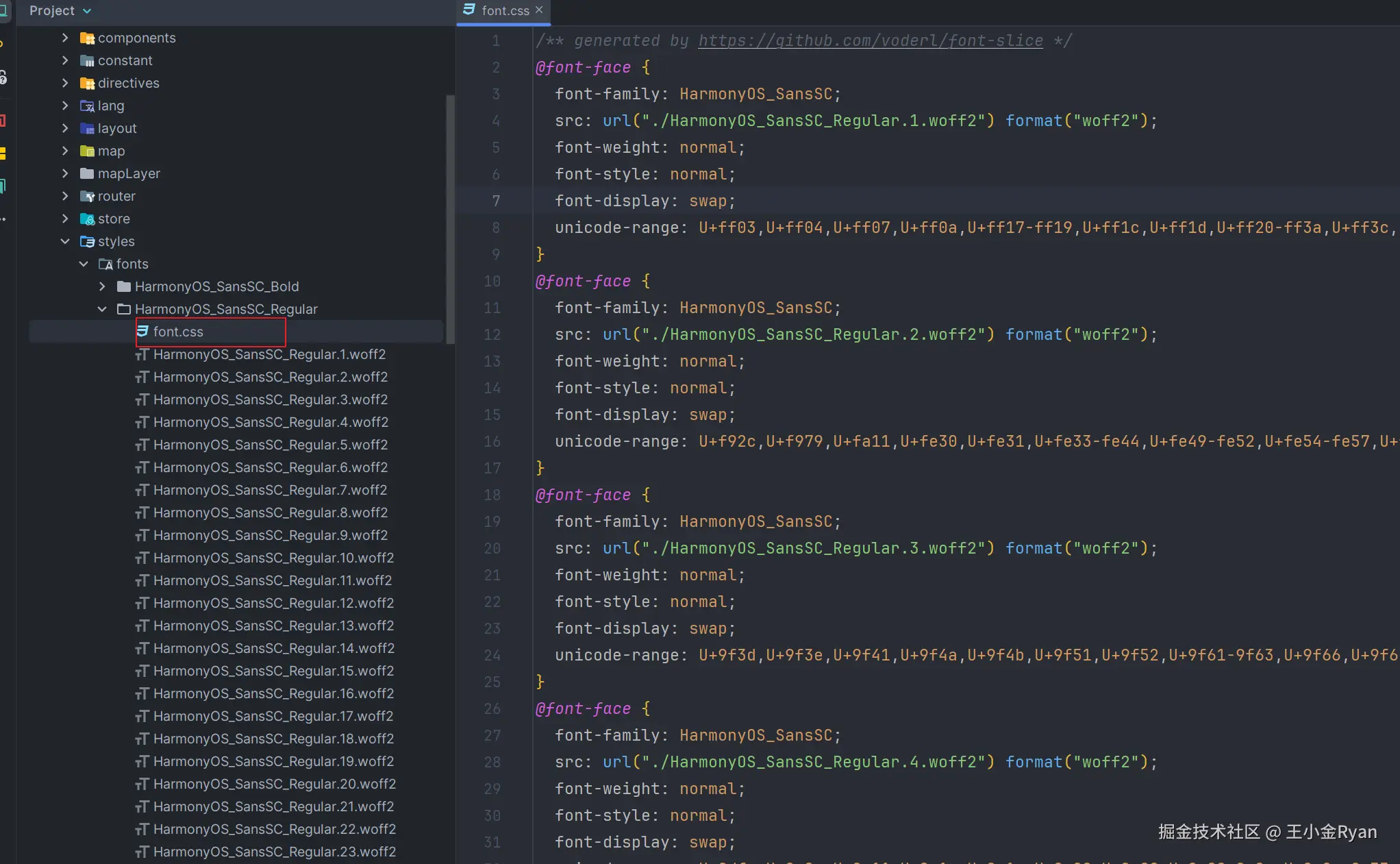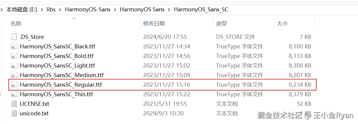 从官网下载的鸿蒙字体是ttf格式的,尝试用了woff2格式的(github.com/IKKI2000/ha…),但是还是有4M多。对于Web端来说,还是太大了。