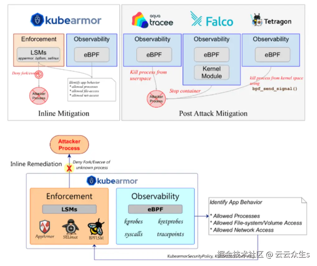 攻击后缓解在利用后做出反应;一旦发生安全事故,它就会识别并阻止它。另一方面,在线安全或运行时安全在攻击发生之前应对潜在攻击。与攻击后缓解相比,它提供了一种更主动、更实时的威胁缓解方法。