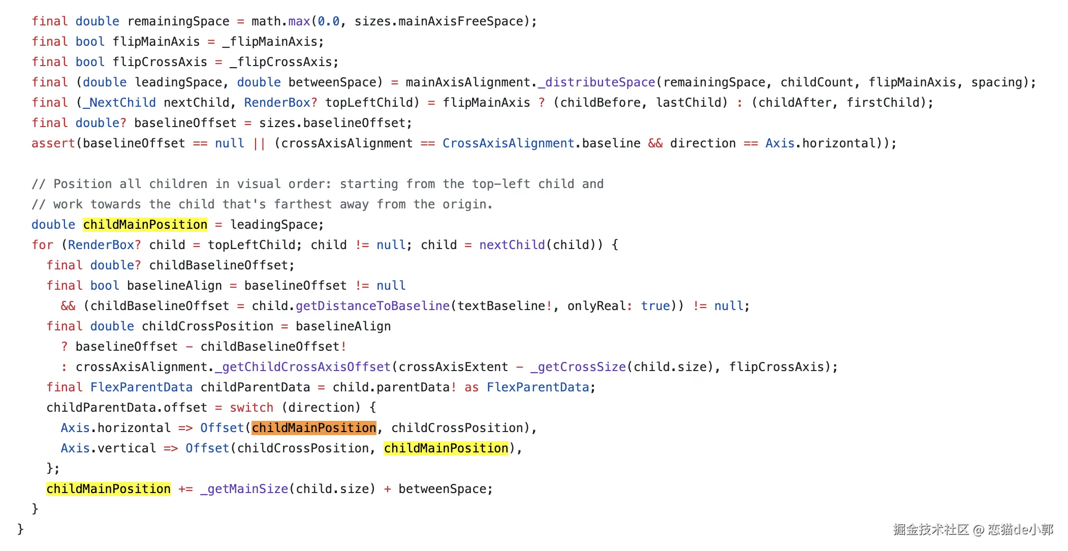 而从调整的结果看,核心就是根据主轴布局增加了 spacing 的支持,最终体现在 childMainPosition 上,落地后的改动量其实并不大,所以最终也被成功合并,风险评估不高。