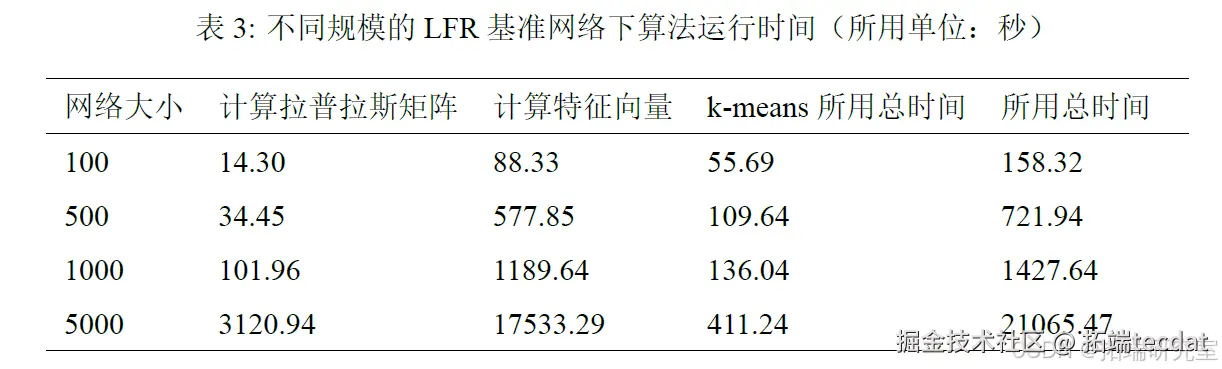 LFR 基准网络是测试社团划分算法的经典人工网络,网络中的度分布和社团大小均服从幂律分布。我们通过调节LFR 网络的规模n 来测试并行算法的运行时间,其余参数为γ = 3 , ζ = 1 . 8 , μ = 0 . 1,结果见表3。