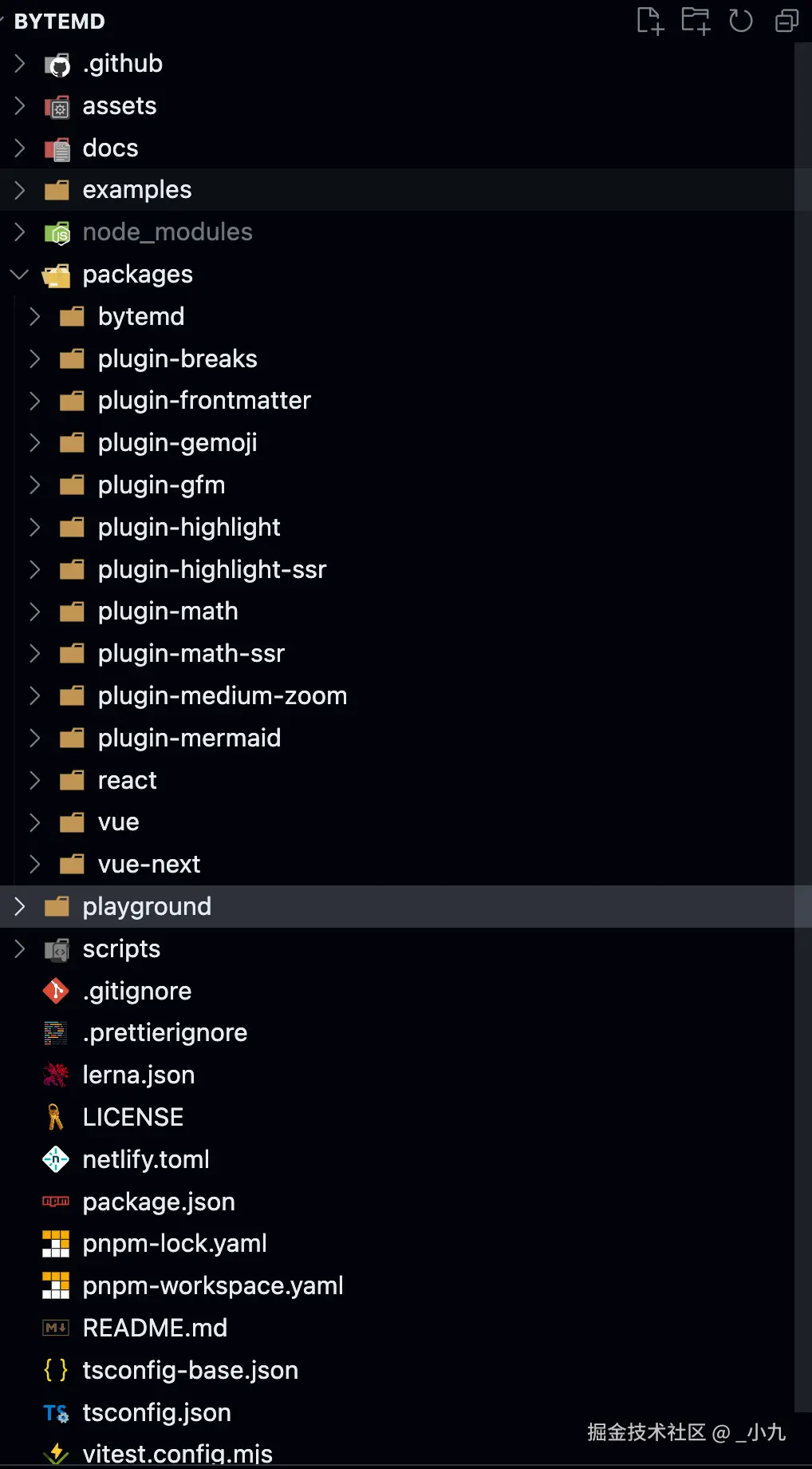 想要开发插件,一般需要文档,但是并没有找到插件相关的文档,于是翻开源码,发现其实只是简单的返回一个配置对象即可,于是就四个插件分别进行开发。在没有文档的情况下如果你也想开发自己的插件可以打开源码查看其TS类型,这样可以快速了解到插件的开发,我们打开源码可以看到其是一个基于pnpm的monorepo仓库开发。