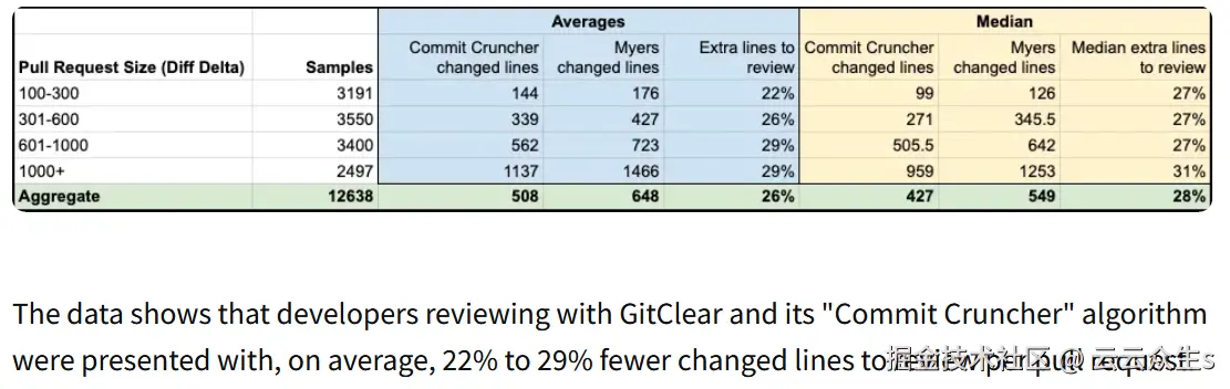 最终结果?需要审查的“更改行”减少了大约 28%——Harding 认为这是一个明显的胜利。“这意味着更新 git diff 处理工具可以将需要审查的行数减少近三分之一。”