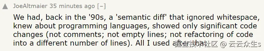 - “能够识别带有注释块和通常尾随空行的完整函数作为一个单元,因此是一个更改,这将非常棒”