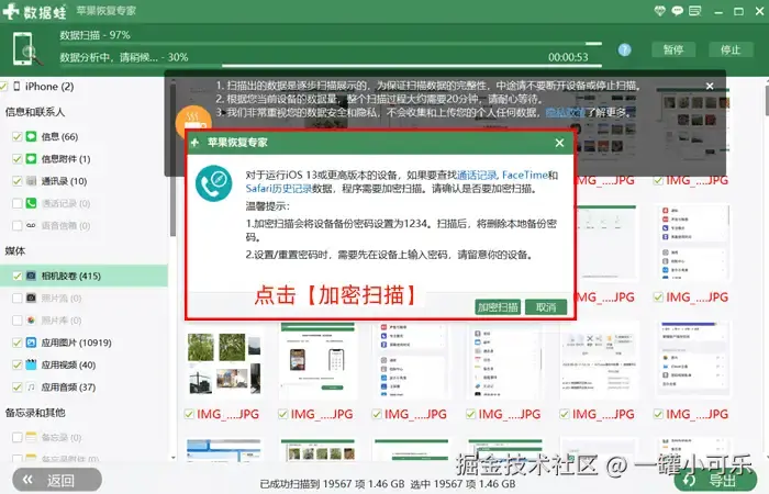步骤2:恢复手机通话记录需要输入加密密码,根据屏幕提示输入相应密码即可。